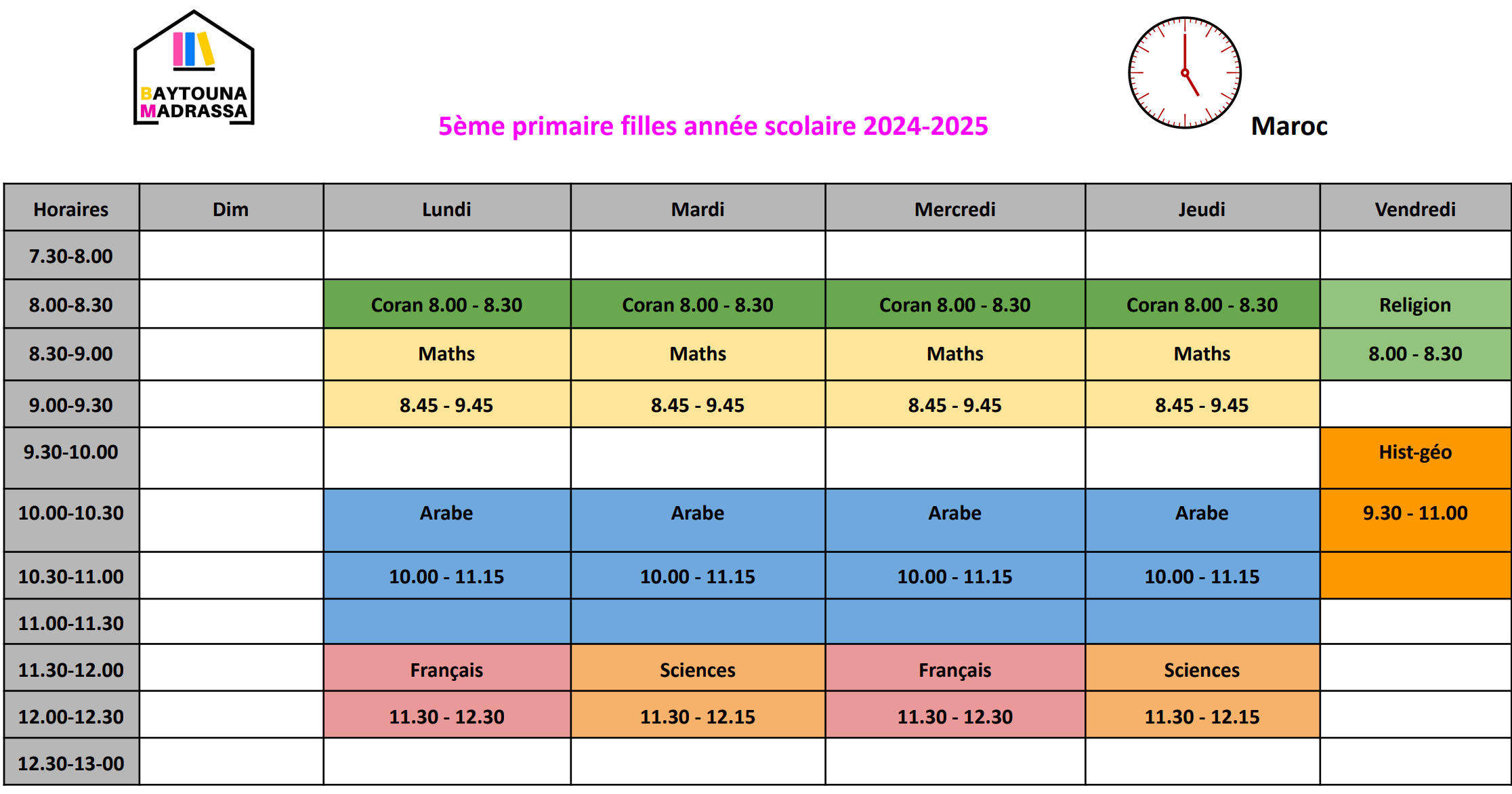 Chaque élève est orienté vers une classe adaptée à son niveau (Juz’Amma, Tabarak, etc)
